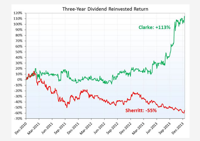 Clarke's latest target is Northern Frontier (FFF-V), an oilpatch services and infrastructure firm. That investment hasn't worked out quite so well -- Northern Frontier shares are down 45% in the past year. Clarke funds own more than 14% of outstanding shares.